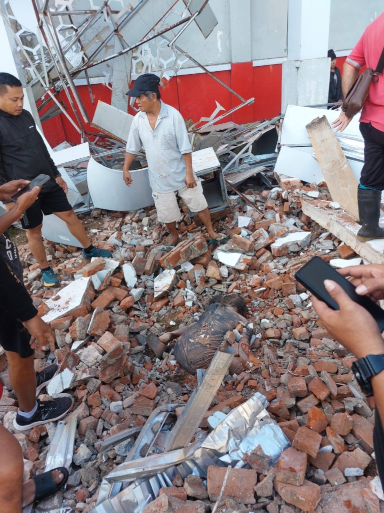 Dampak gempa bumi berkekuatan magnitudo 7,6 menyebabkan kerusakan pada Gereja Katolik Rumengkor di Minahasa, Sulawesi Utara, Jumat (2/4/2026).