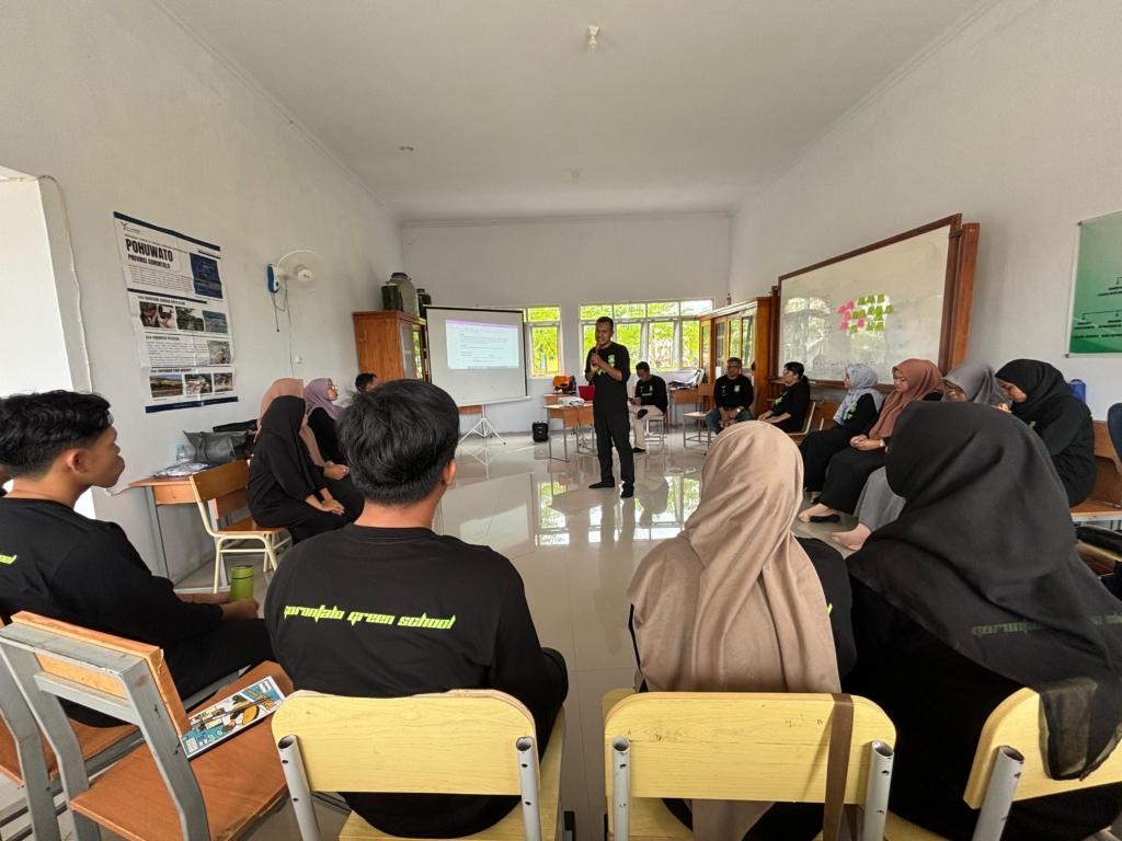 Berangkat dari kegelisahan itulah Gorontalo Green School mulai dirintis sejak akhir 2023. Inisiatif ini tumbuh di Kabupaten Pohuwato, Gorontalo, tepatnya di wilayah barat di bawah kawasan bentang hutan alam Popayato–Paguat. Wilayah ini menyimpan potensi ekologis yang besar, namun juga rentan bila dikelola tanpa prinsip keberlanjutan. Green School tidak lahir sebagai program besar dengan janji instan, melainkan sebagai langkah kecil yang konsisten, bertumpu pada pendidikan dan praktik sehari-hari di lingkungan sekolah dan komunitas.